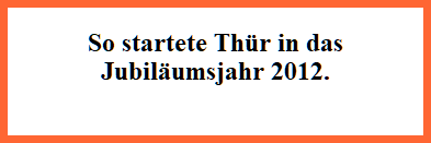 Unvergessen bleibt allen Thürern die Feier 900 Jahre Thür vom 07. - 09.09.2012. Es begann mit einer langen Tafel in der Segbachstraße, an der ausgiebig gespeist und gefeiert wurde und endete in einer Feier der historischen Höfe, die sich über zwei Tage erstreckte. Der KVV Thür war bei all diesen Feiern gefordert. Ein Kalender stellte dieses Ereignis unter anderem ausführlich dar.
